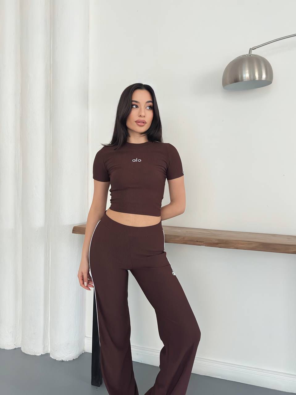 Modern ve sportif tasarımı bir araya getiren bu ikili takım, gün boyu konforlu ve stil sahibi bir görünüm sunar. Yan kısımlarındaki şerit detayları ile hareket kazanan kısa kollu crop top ve bol paça pantolon kombinasyonu, vücut hatlarını zarifçe dengelerken hareket özgürlüğü sağlar. Hem günlük kombinlerinizde hem de aktif yaşamınızda tercih edebileceğiniz bu alt üst takım, kaliteli ve esnek dokusuyla gardırobunuzun favori parçası olmaya aday.